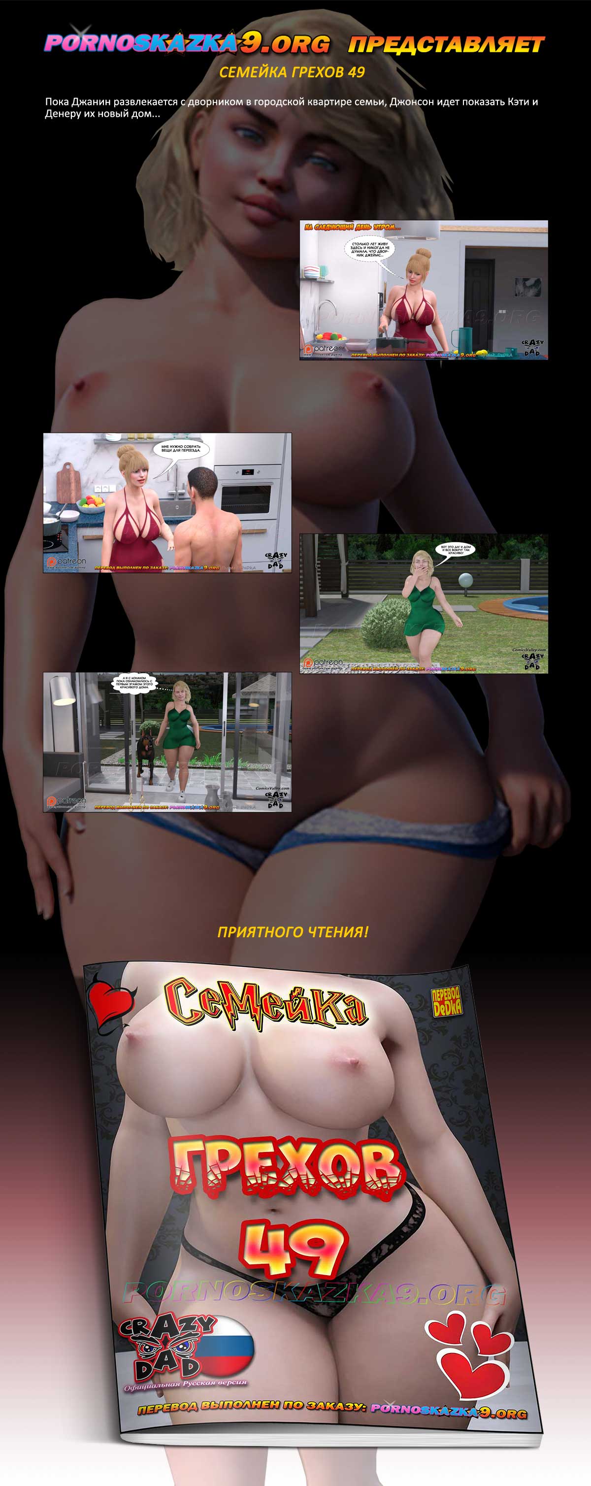 Порно комикс «Семейка грехов. Часть 49». Пока Джанин развлекается с дворником в городской квартире семьи, Джонсон идет показать Кэти и Денеру их новый дом…